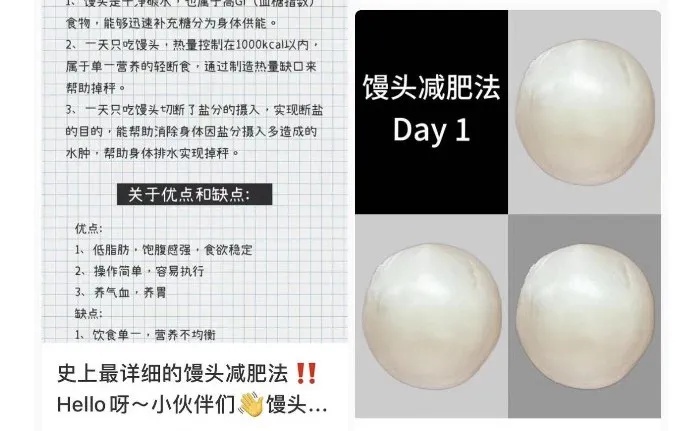 记者搜索发现,社交平台上已有不少网友打卡这一减肥法,“汉堡减肥法”“馒头减肥法”等类似方法也受到不少网友追捧。